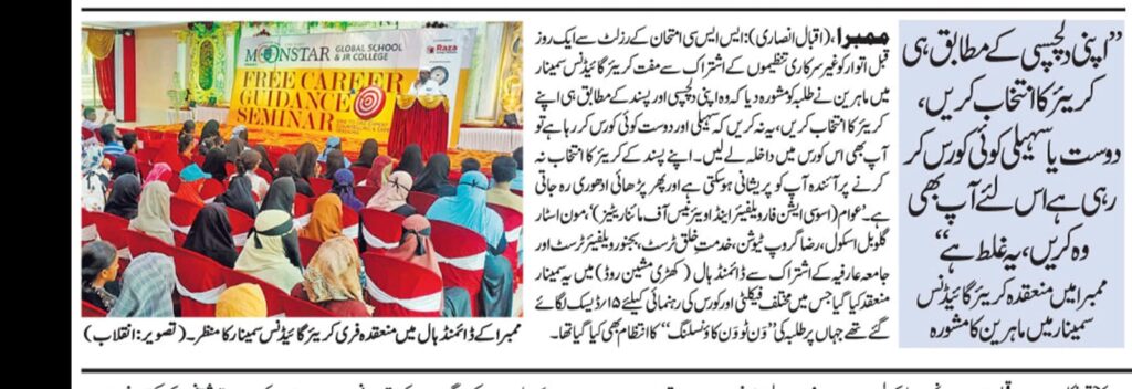 Our recent initiative to support and guide the youth of Mumbra has gained significant recognition! The Daily Inquilab recently covered our “Free Career Guidance Seminar,” highlighting the vital impact such events have on students’ futures.