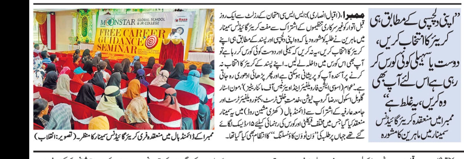 Our recent initiative to support and guide the youth of Mumbra has gained significant recognition! The Daily Inquilab recently covered our “Free Career Guidance Seminar,” highlighting the vital impact such events have on students’ futures.